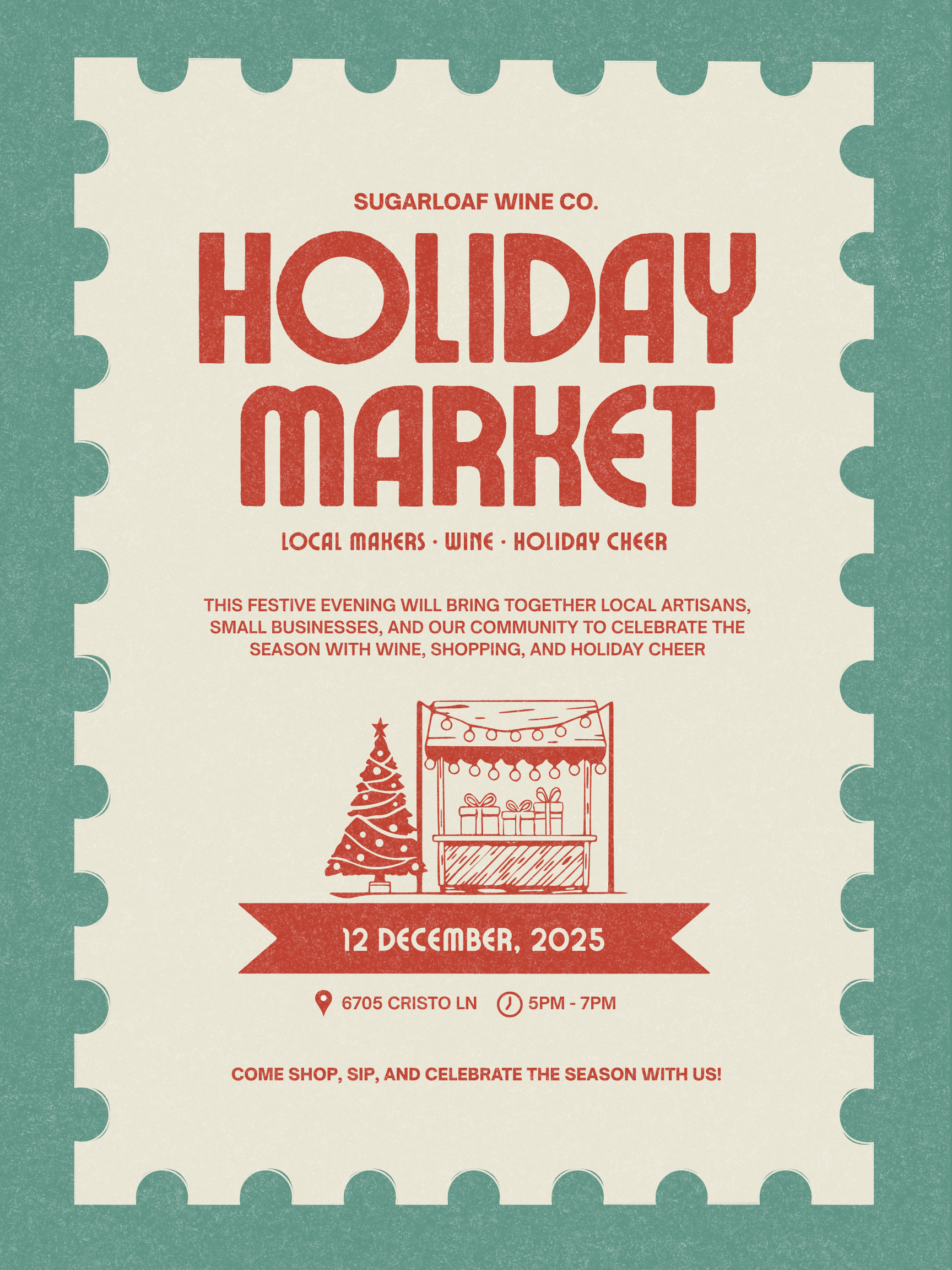 One more holiday event at SUGARLOAF WINE CO. in Santa Rosa on December 12, 5-7pm Please stop in!